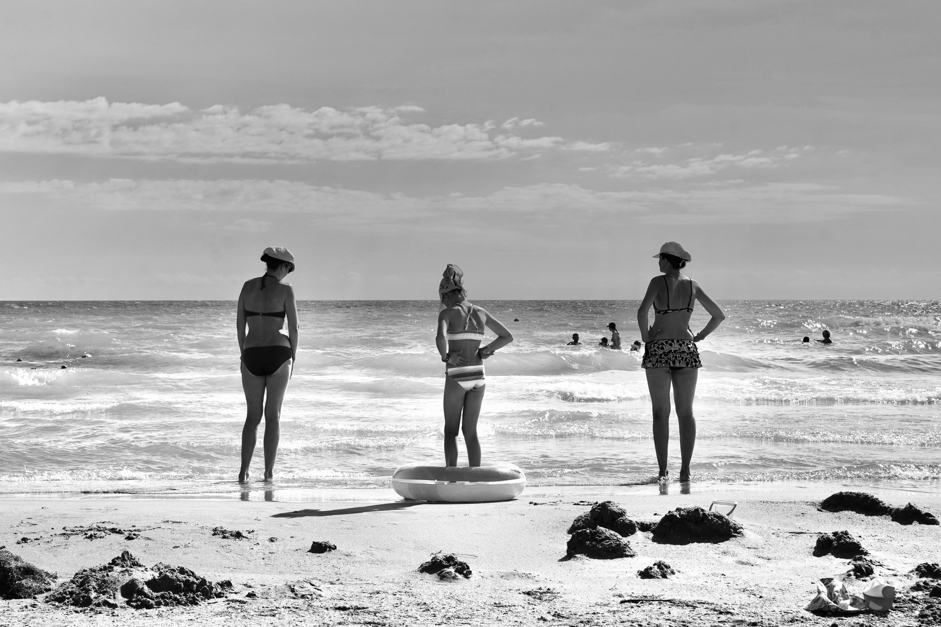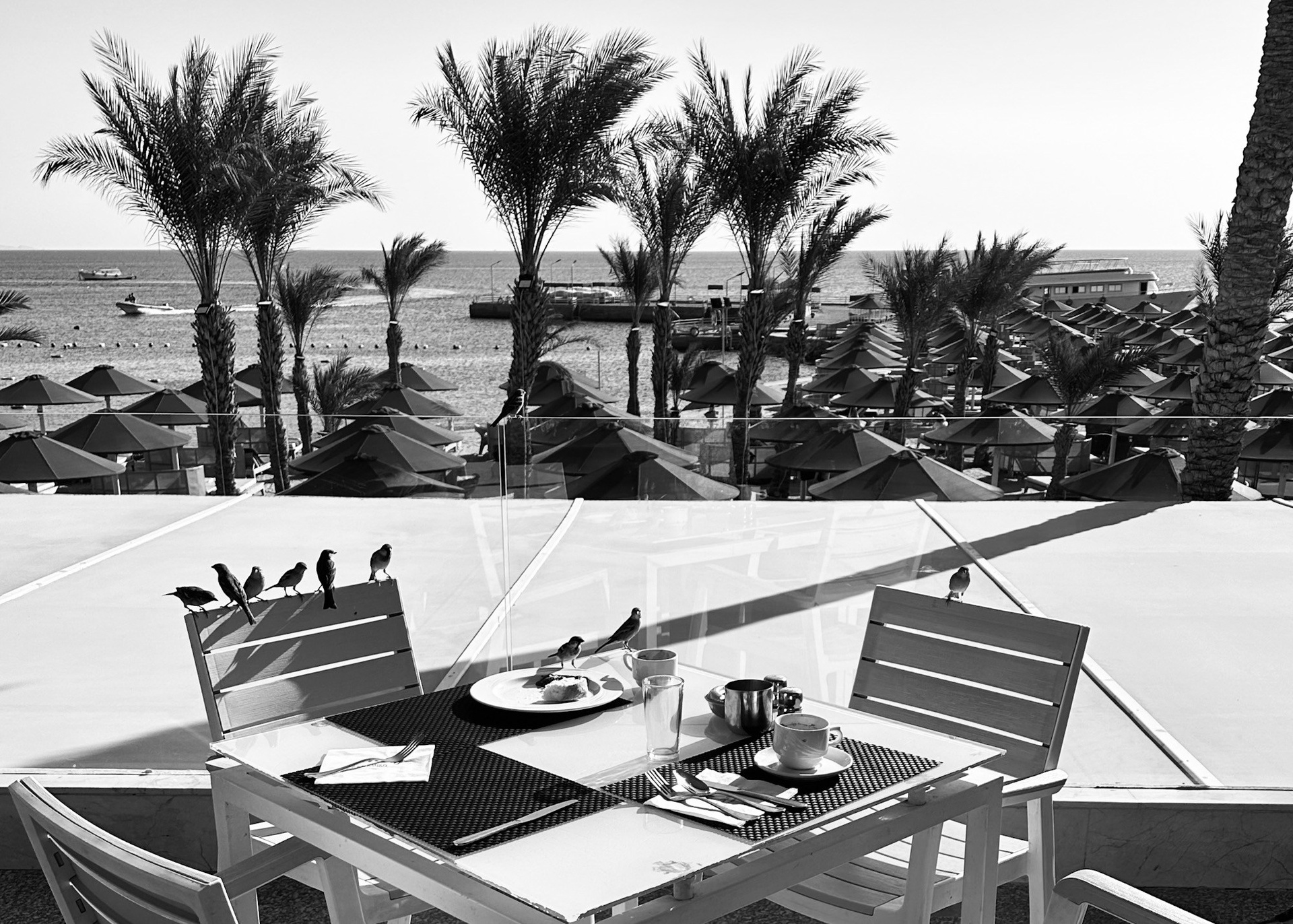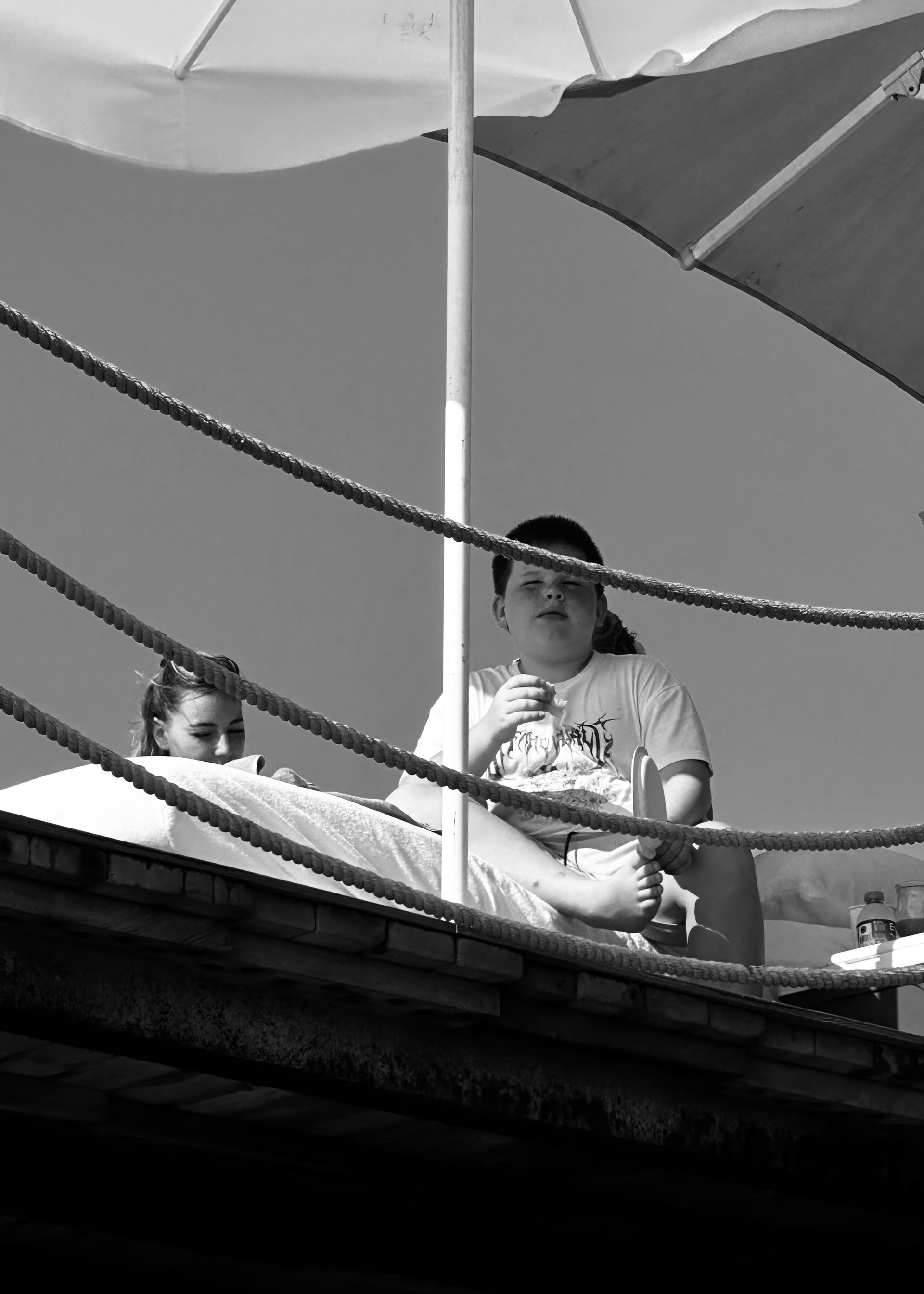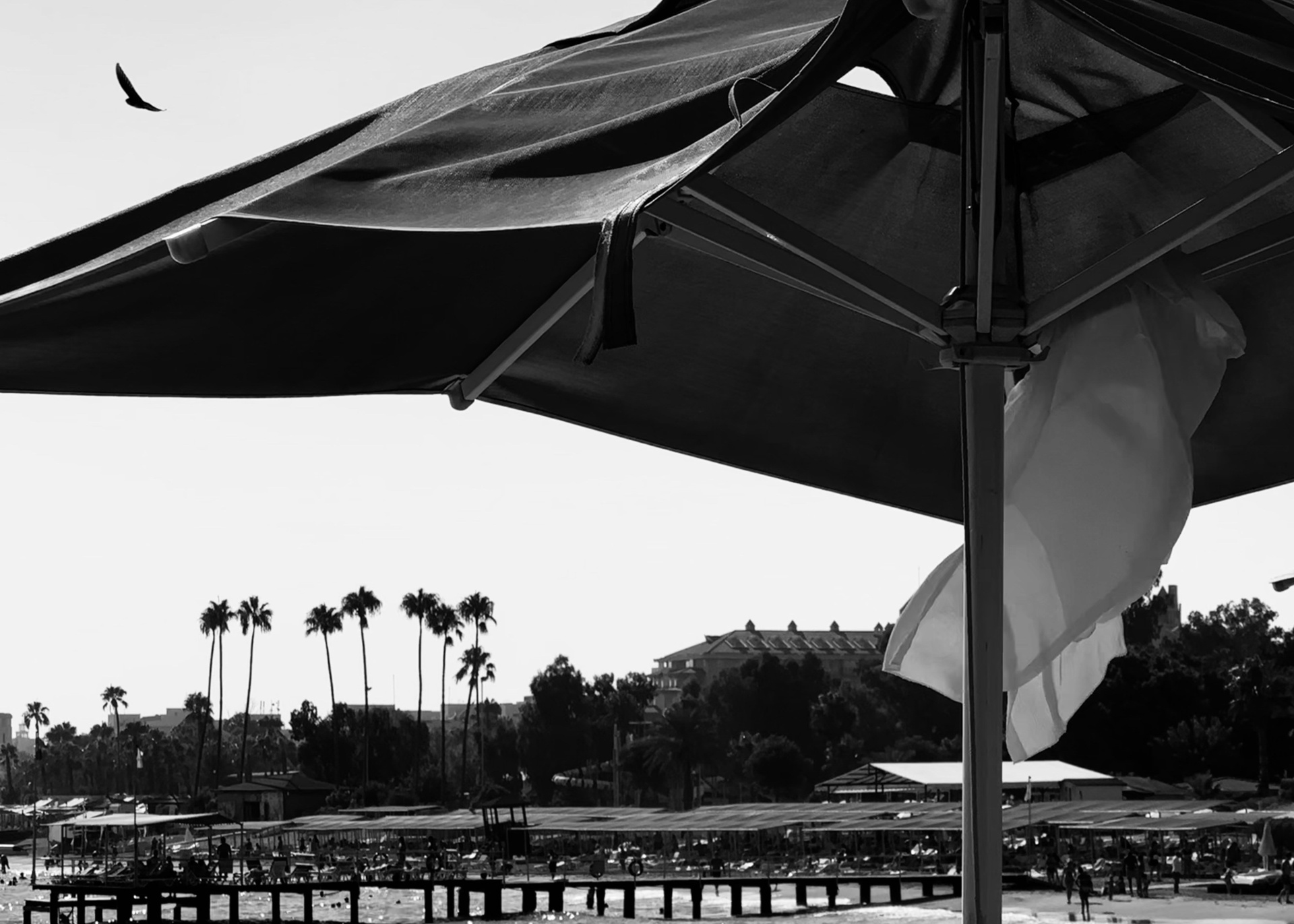 Эта черно-белая серия — про пляжную жизнь, где жара обостряет всё до предела: тени становятся глубже, солнце ярче, а фигуры людей будто расплавляются под палящим солнцем. Тут загорающие превращаются в театральных персонажей, а каждая занавеска — декорация для пляжного спектакля. Спектакль на пляже идёт без антракта, а зрители могут выбрать роль: быть в тени или стать частью игры.