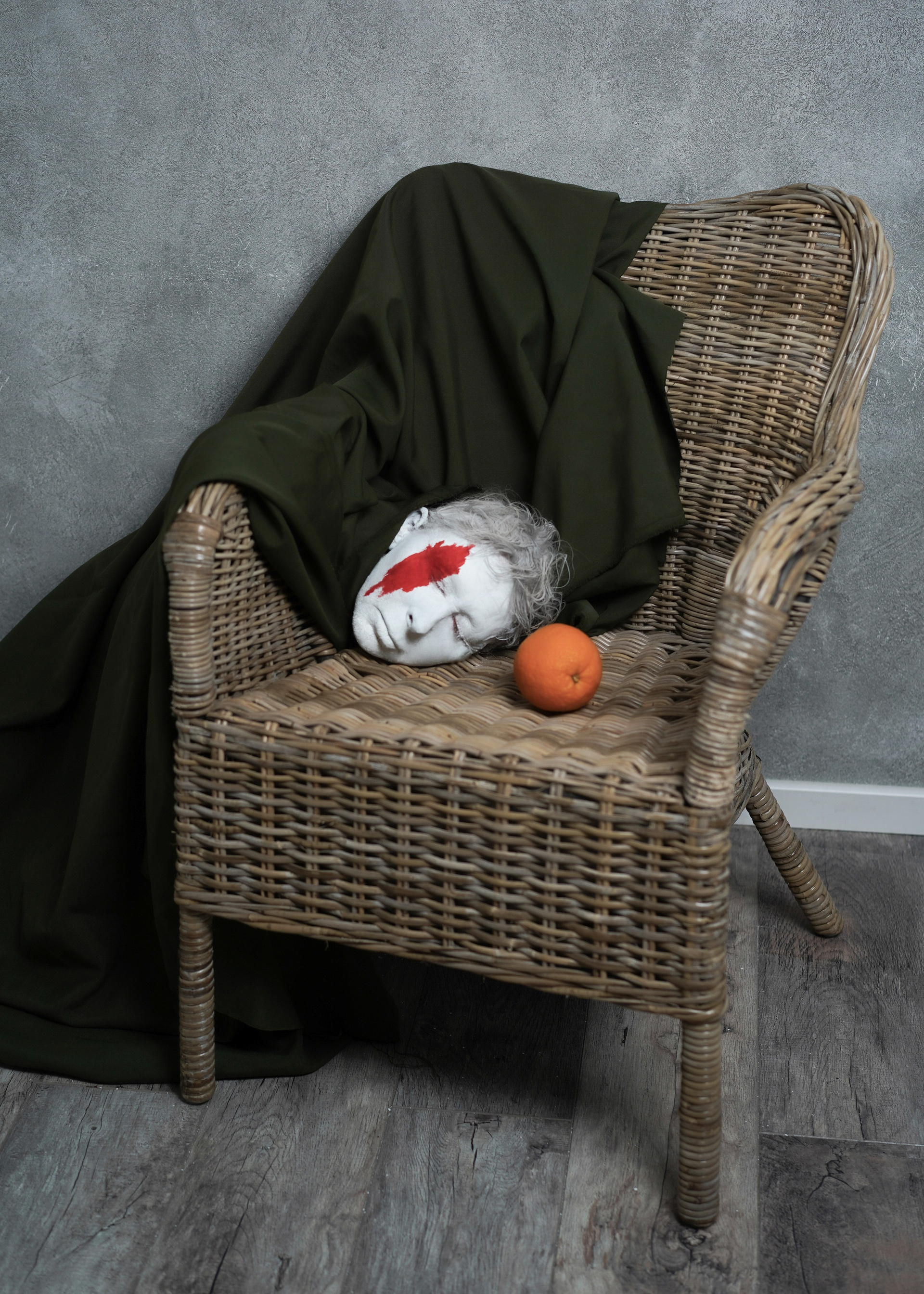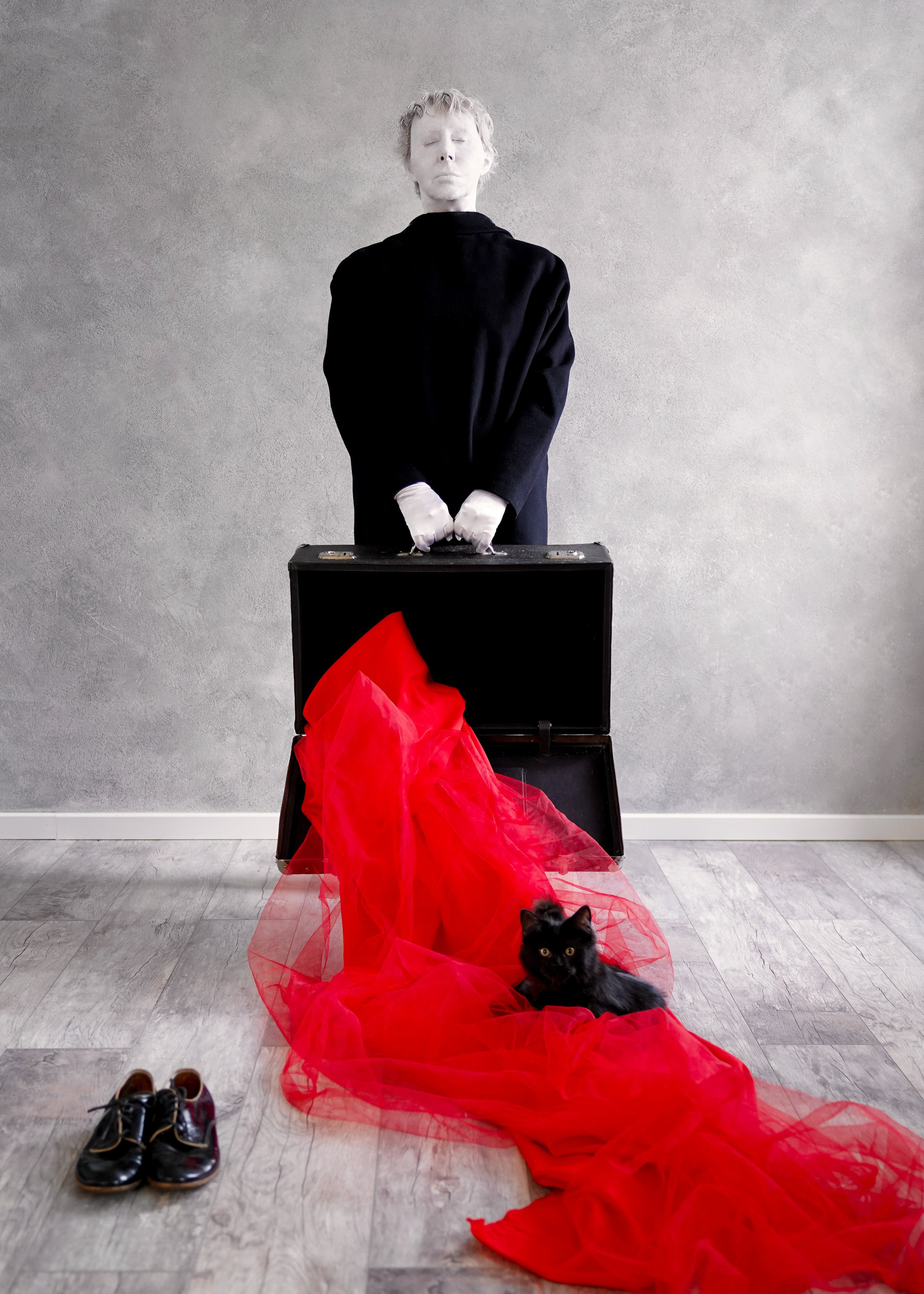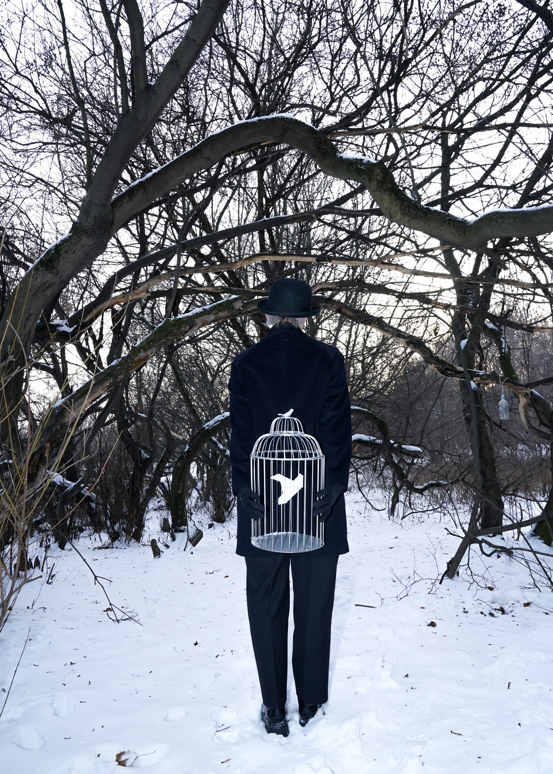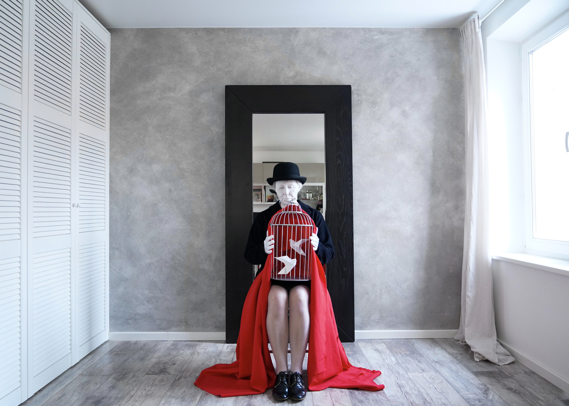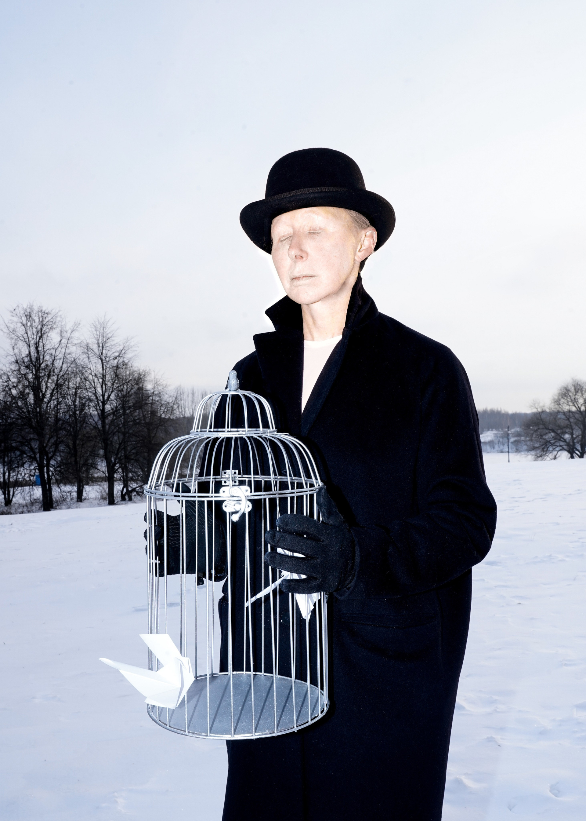 Эта серия — моя рефлексия на тему войны и насилия. Она наполнена образами, отсылающими к творчеству Рене Магрита. Последние годы я не могу почувствовать себя безопасно даже в собственном доме, новости врываются к нам без спроса.